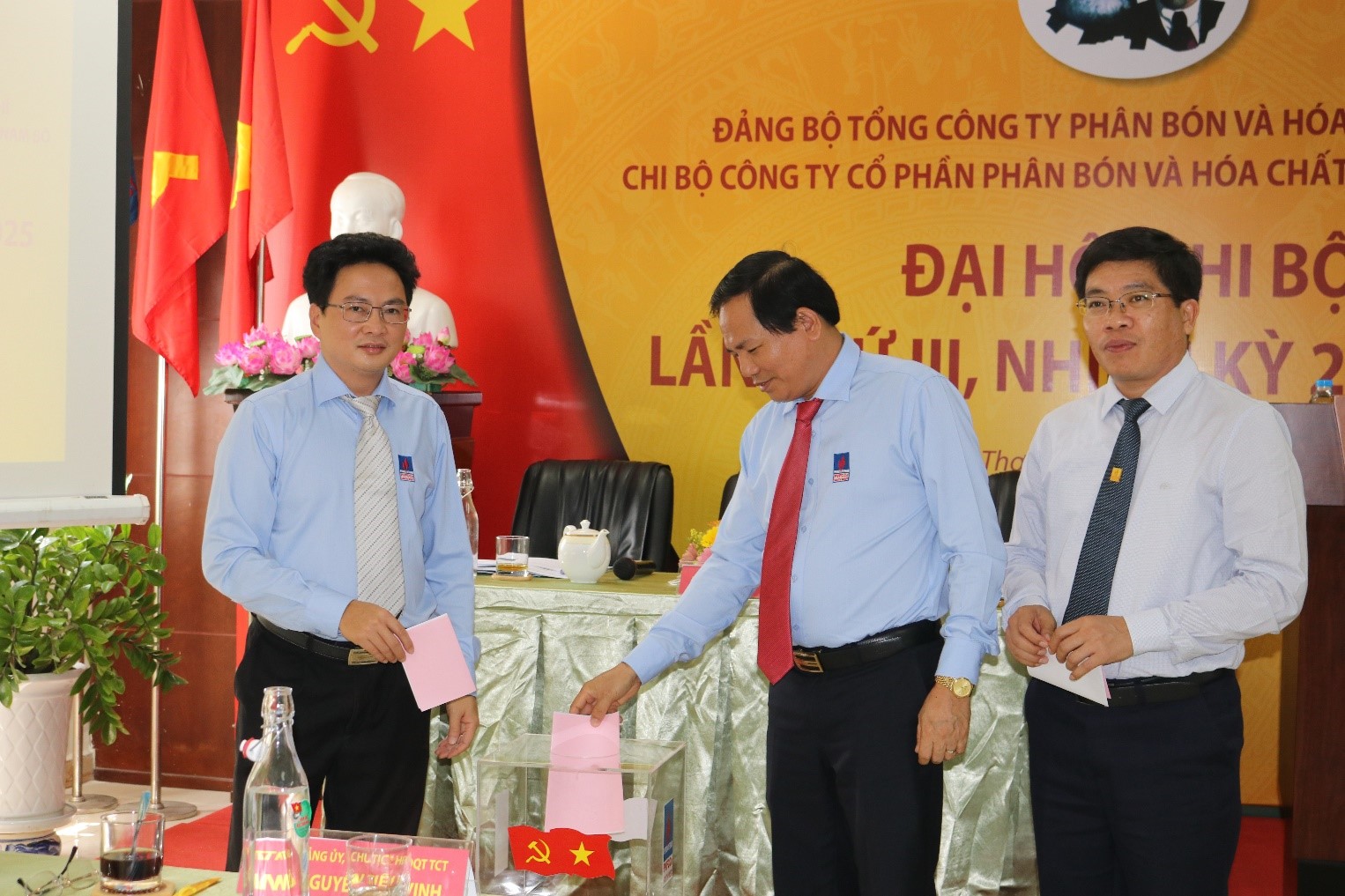 Đại hội đã tiến hành bầu BCH Chi ủy nhiệm kỳ 2020 – 2025 gồm 03 đồng chí: Đồng chí Phạm Quý Hiển – Chủ tịch HĐQT Công ty được tín nhiệm bầu giữ chức Bí thư Chi bộ, đồng chí Trịnh Văn Khiêm –Giám đốc Công ty được tín nhiệm bầu giữ chức Phó Bí thư Chi bộ, đồng chí Lê Thanh Tùng – Phó giám đốc Công ty giữ chức vụ Chi ủy viên Chi bộ nhiệm kỳ 2020-2025. Đại hội cũng tiến hành bầu đoàn đại biểu đi dự Đại hội đại biểu Đảng bộ PVFCCo bao gồm 8 đồng chí tham dự chính thức và 01 đồng chí dự khuyết. Các đại biểu đã biểu quyết, thông qua Nghị quyết Đại hội với tỉ lệ nhất trí 100% trên tổng số đại biểu tham dự.
