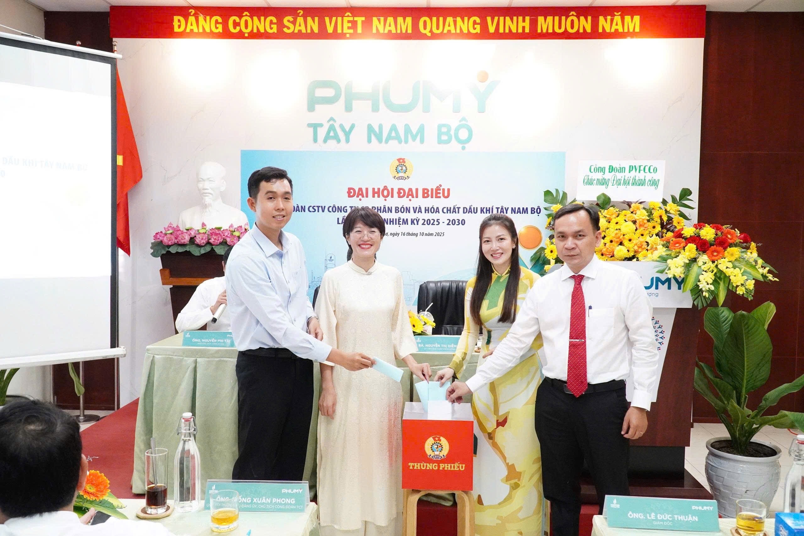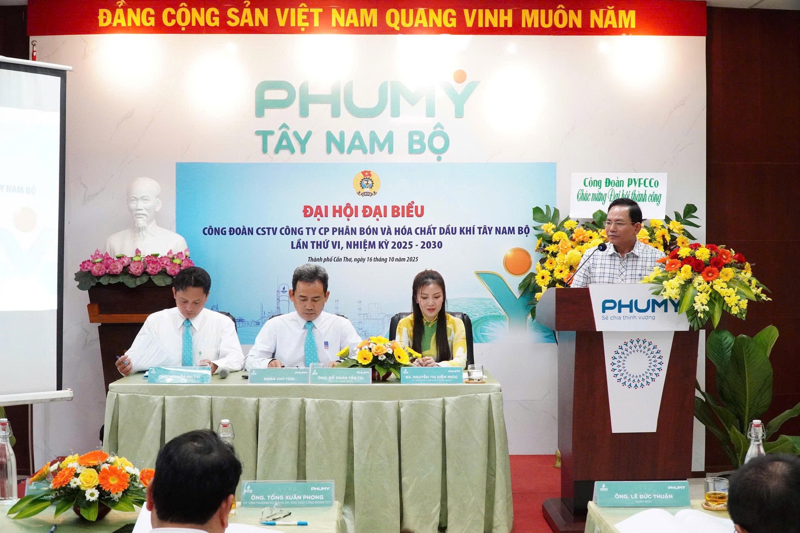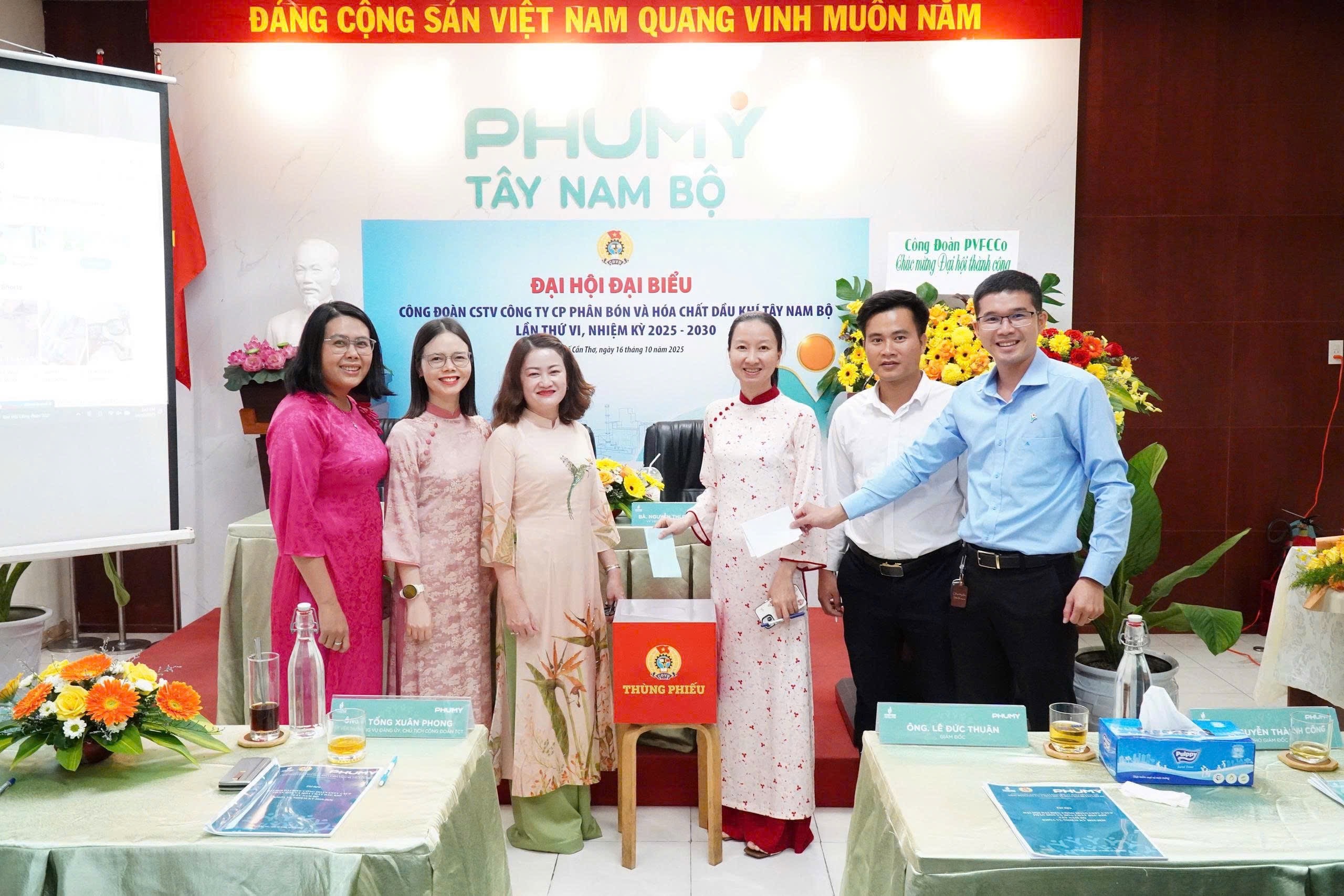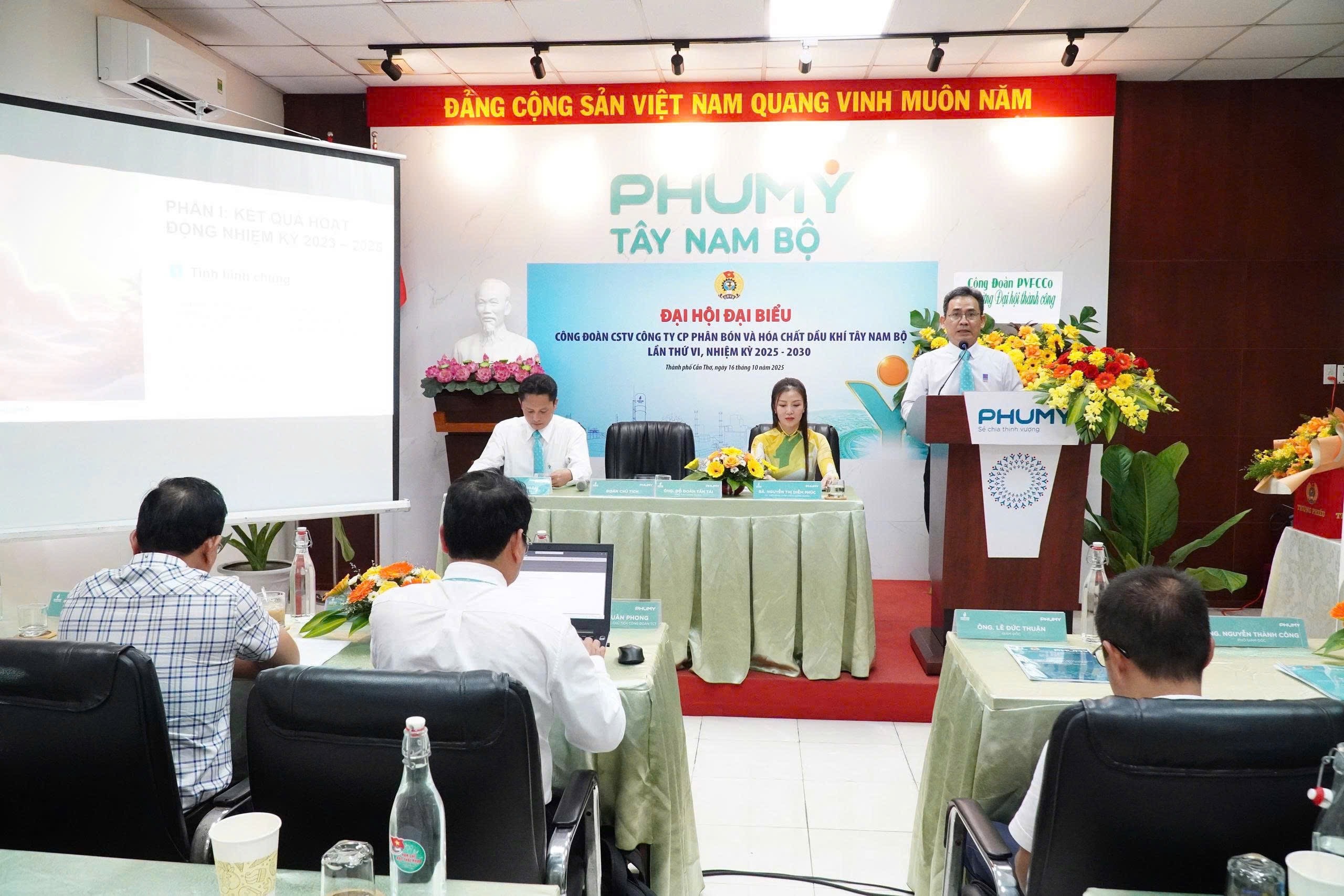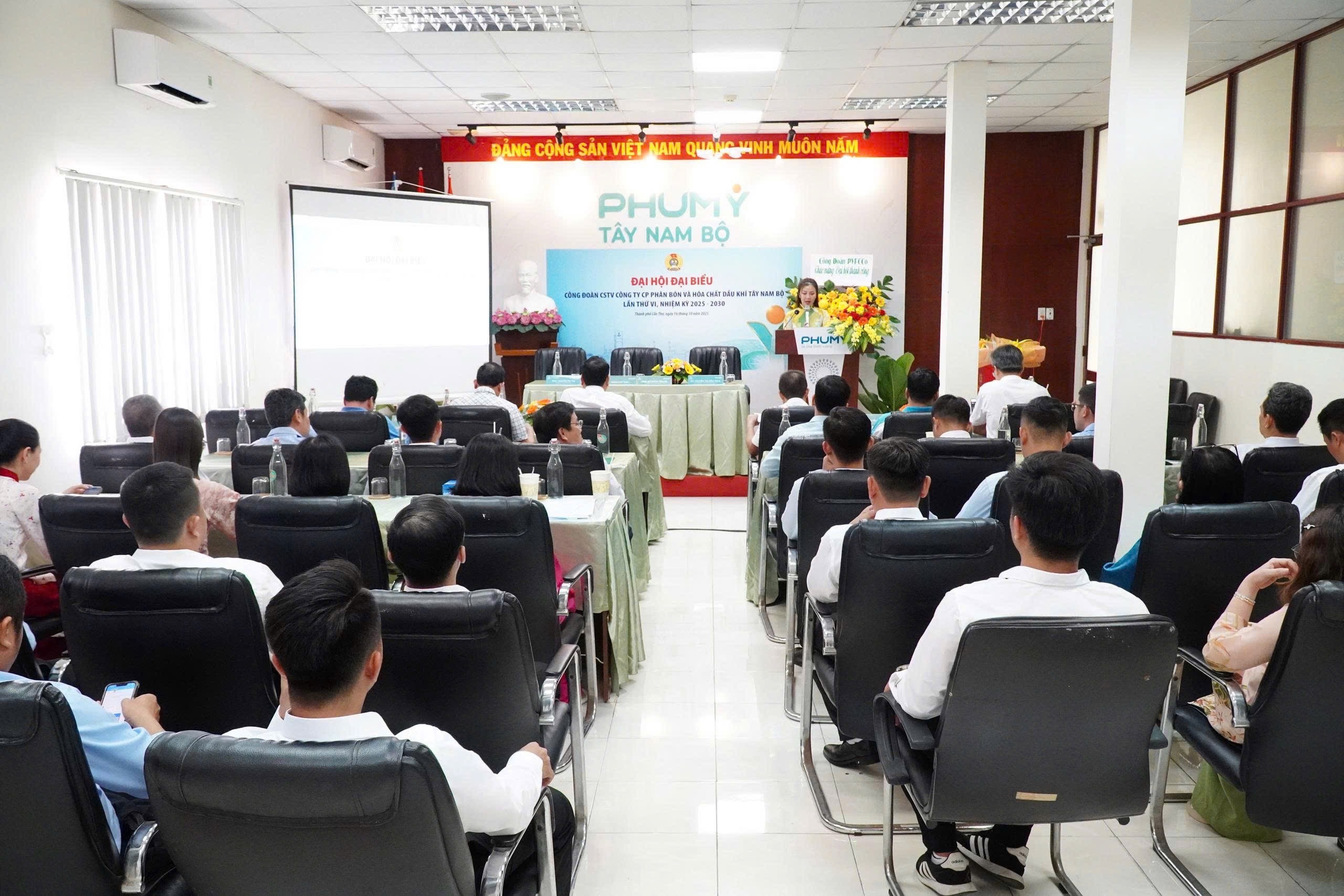 Chiều ngày 16/10/2025, Công đoàn Công ty Cổ phần Phân bón và Hóa chất Dầu khí Tây Nam Bộ (Phú Mỹ Tây Nam Bộ) đã tổ chức thành công Ðại hội Ðại biểu Công đoàn lần thứ VI, nhiệm kỳ 2025-2030.