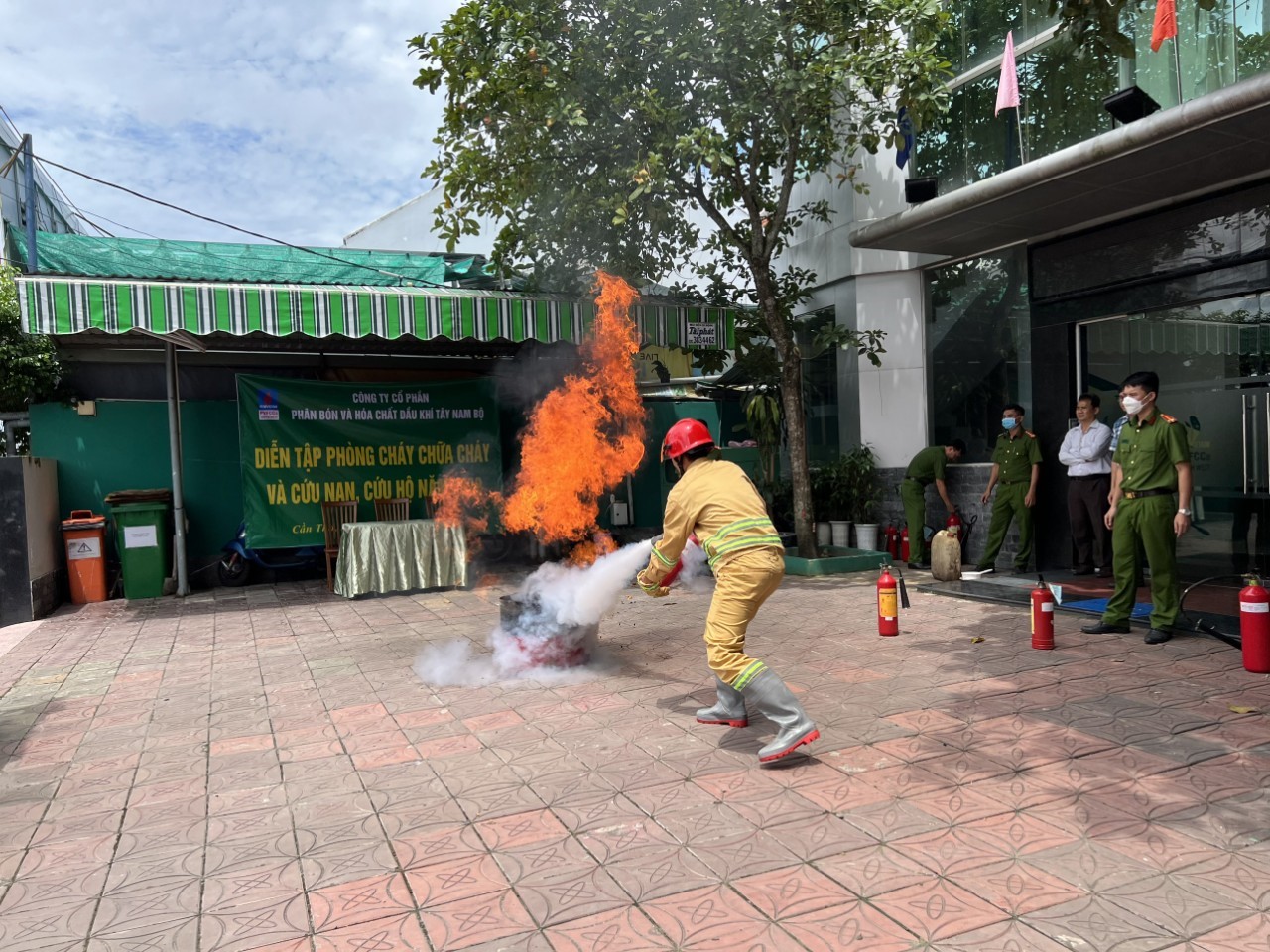 Thực hiện theo kế hoạch hàng năm về việc tổ chức tuyên truyền và thực tập phối hợp phương án chữa cháy, cứu nạn cứu hộ tại Công ty Cổ phần Phân bón và Hóa chất Dầu khí Tây Nam Bộ (PSW) năm 2022. Sáng ngày 12/10/2022, PSW đã phối hợp với Đội Cảnh sát PCCC, CNCH công an Quận Ninh Kiều tổ chức buổi diễn tập PCCC tại văn phòng Công ty.