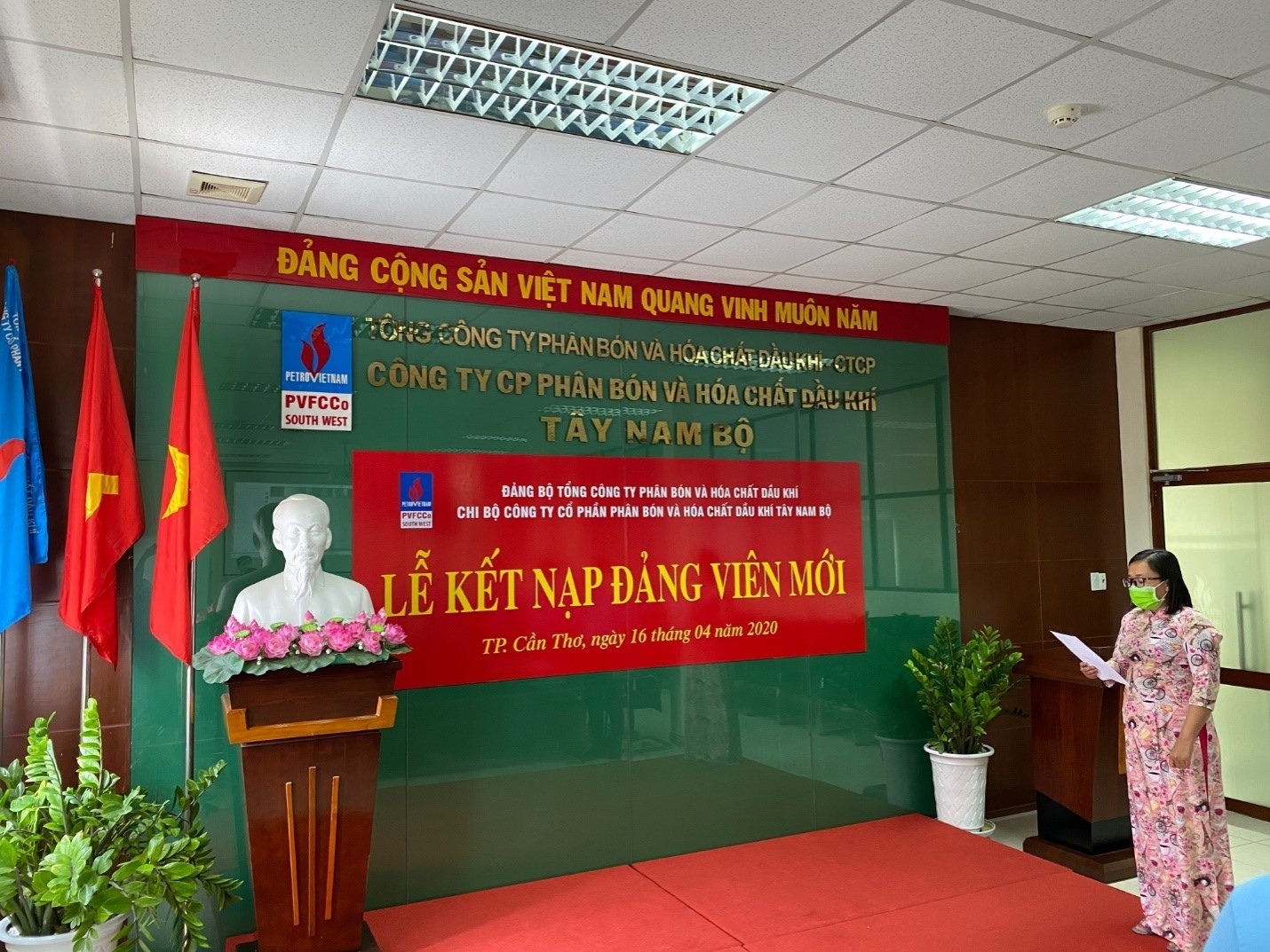 Ngày 16/04/2020, được sự đồng ý của Đảng uỷ Tổng công ty Phân bón và Hóa chất Dầu khí (PVFCCo), Chi bộ Công ty cổ phần Phân bón và Hóa chất Dầu khí Tây Nam Bộ (PSW) đã long trọng tổ chức lễ kết nạp đảng viên mới cho quần chúng Phạm Thanh Thoảng, nhân viên phòng Kinh doanh.